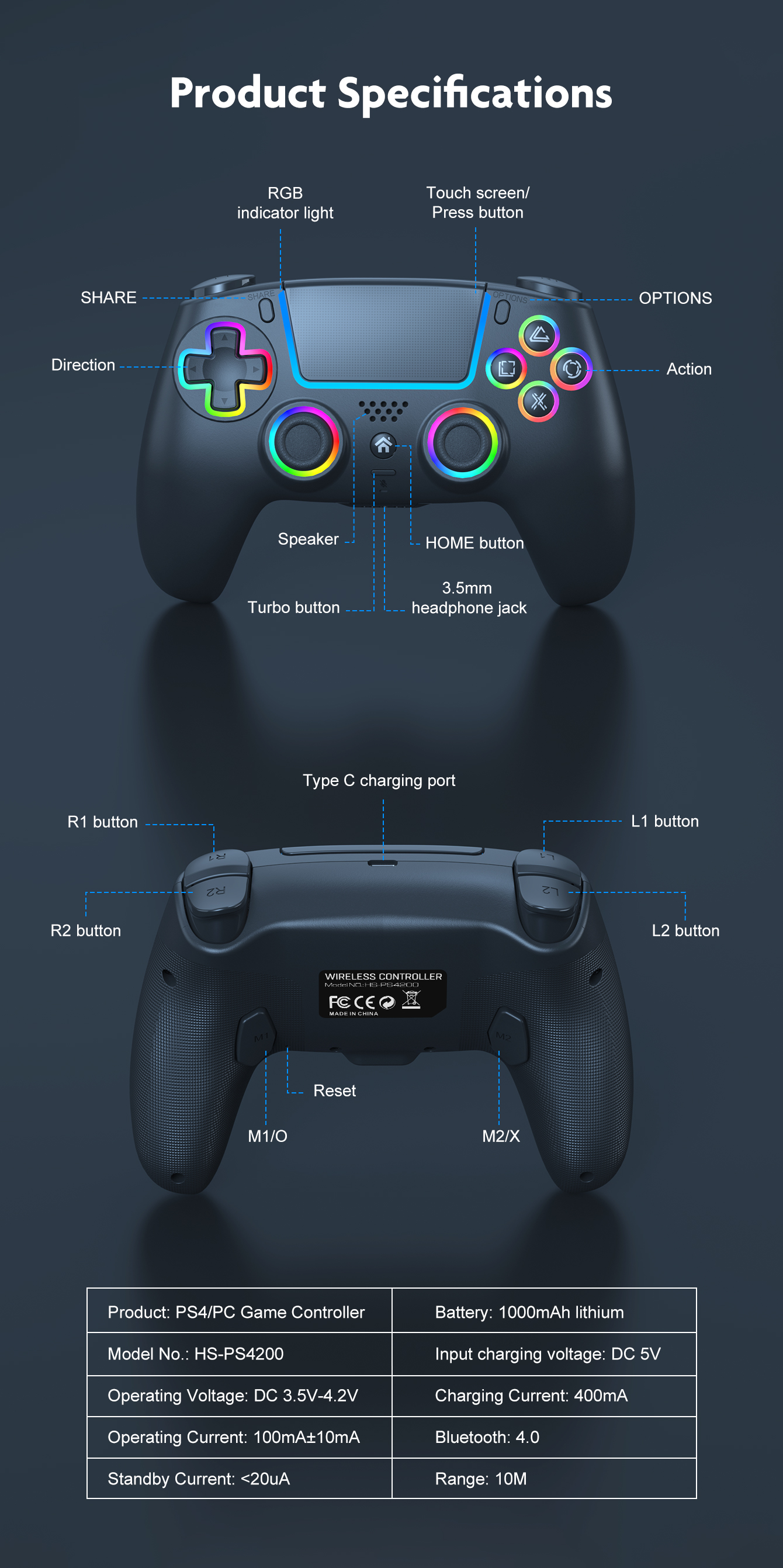 Wireless Controller For PS4/PC