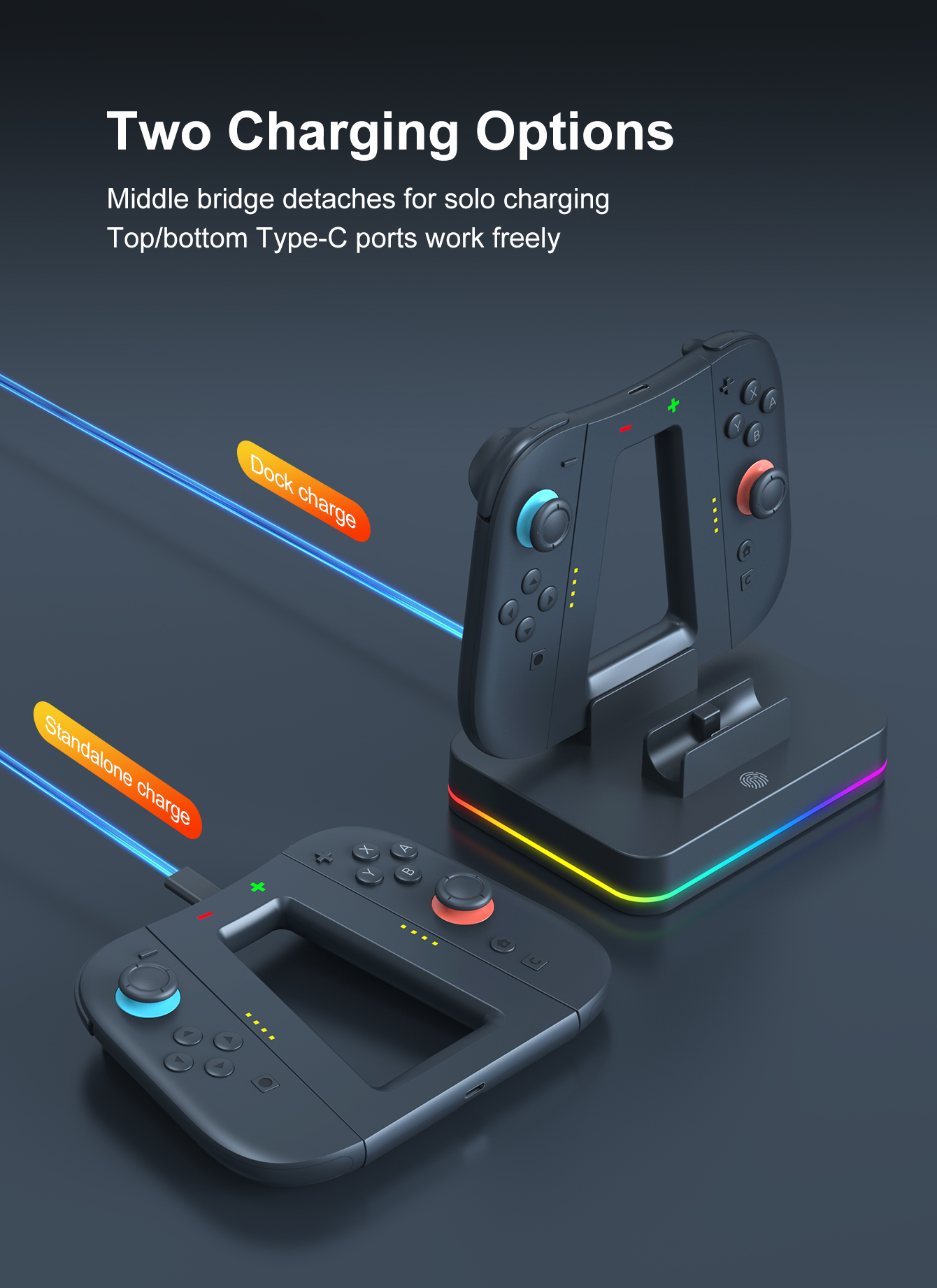 *Detachable charging stand design supports separate charging, allowing players to play while charging.