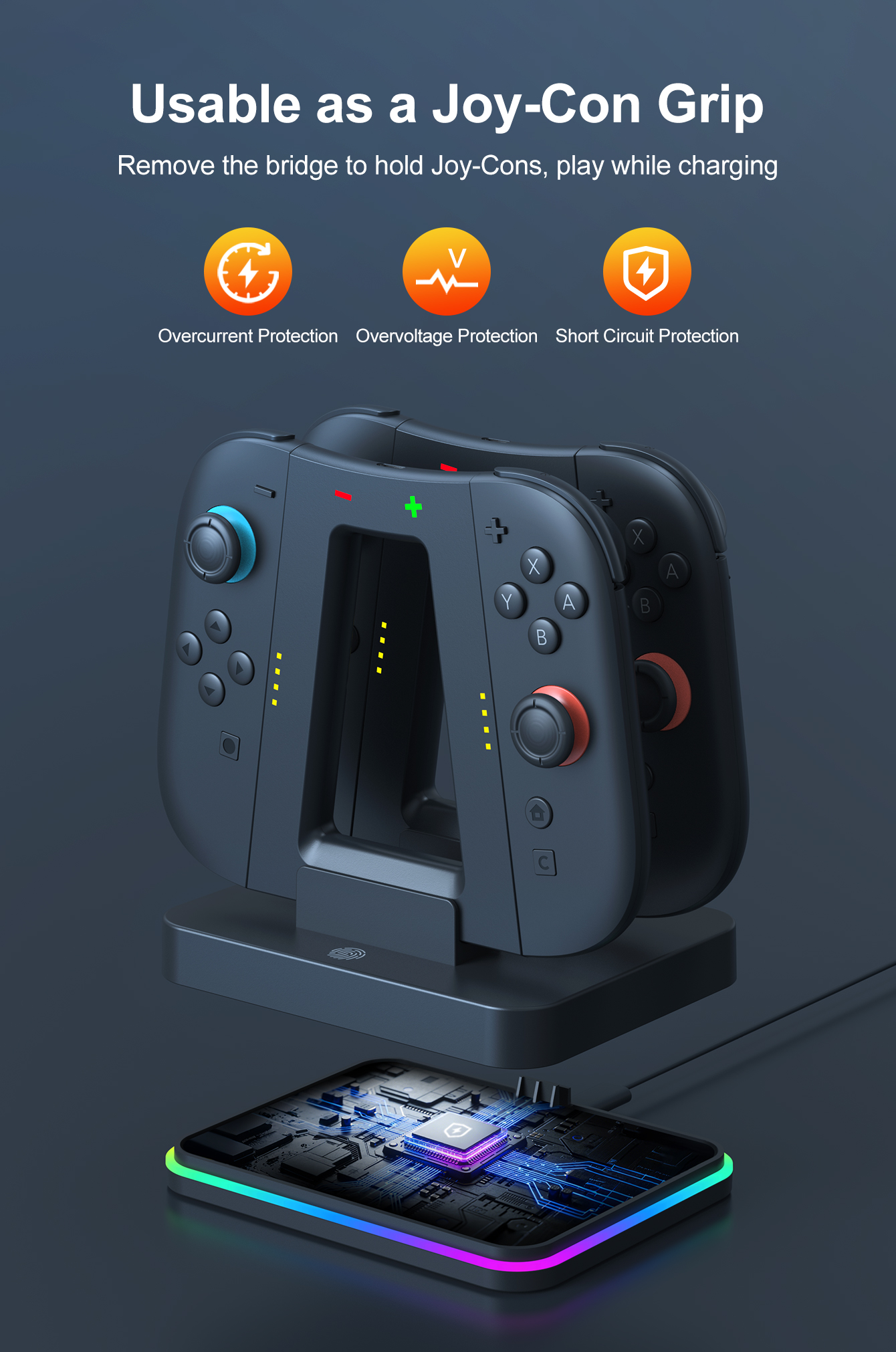 *Low-voltage, over-voltage and over-current protection, safe charging, long-term charging will not damage JoyCons.