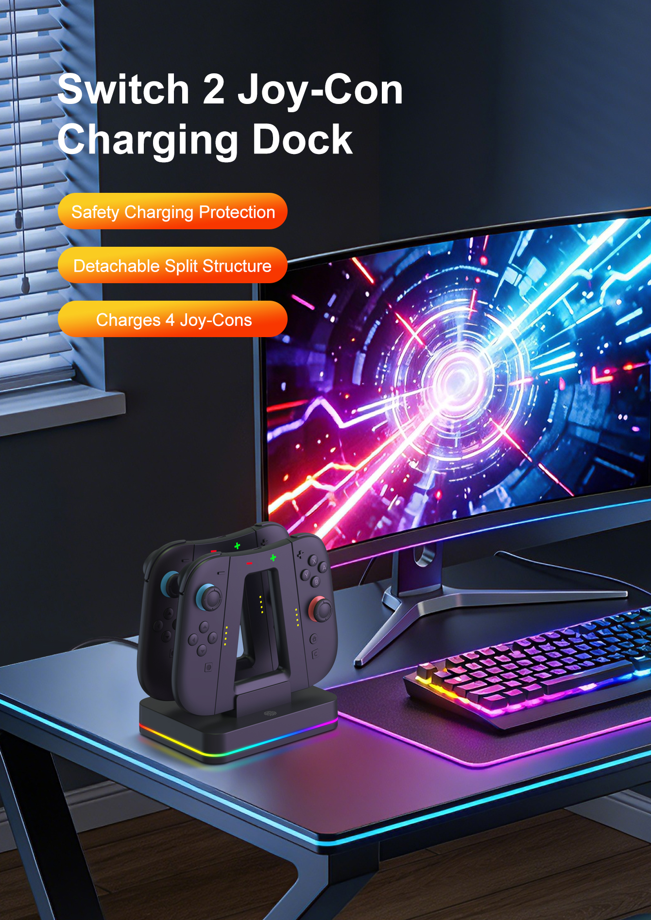 *Designed for charging the left and right JoyCon of Switch 2, and can charge 4 JoyCons at the same time.