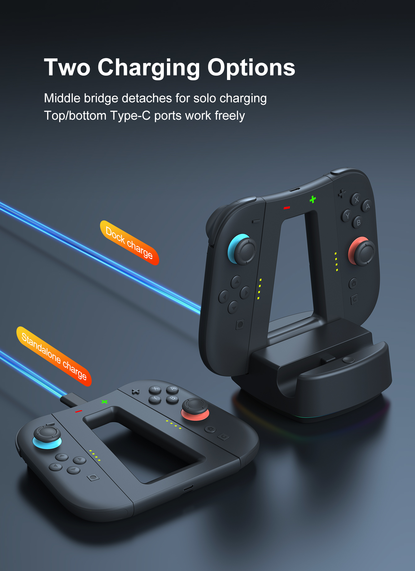 *Detachable charging stand design supports separate charging, allowing players to play while charging.