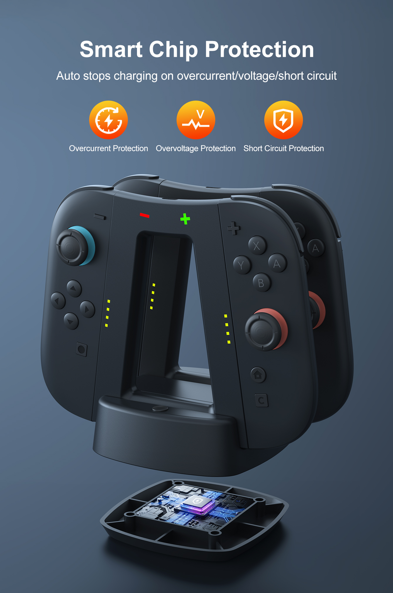 *Low-voltage, over-voltage and over-current protection, safe charging, long-term charging will not damage JoyCons.