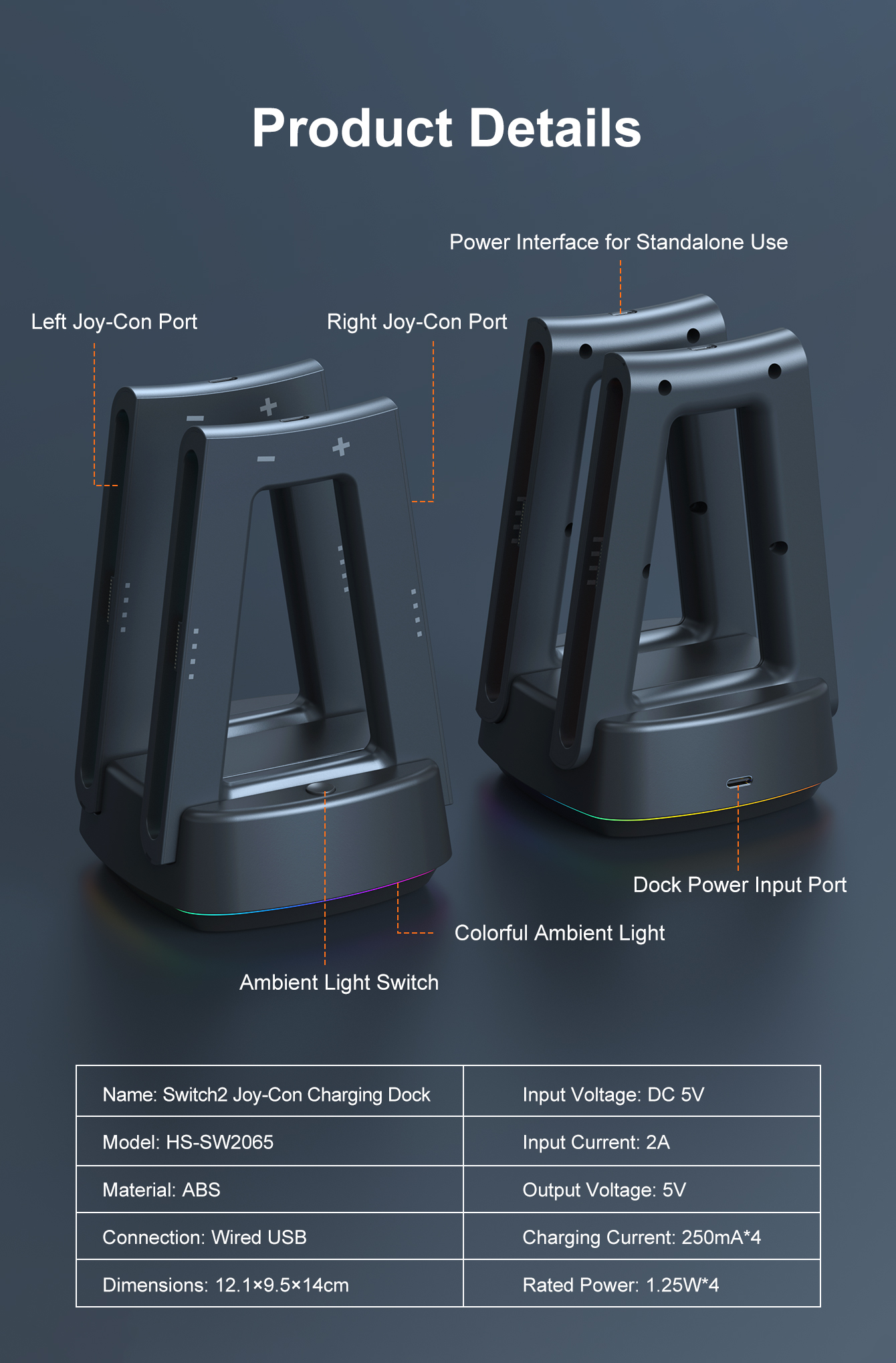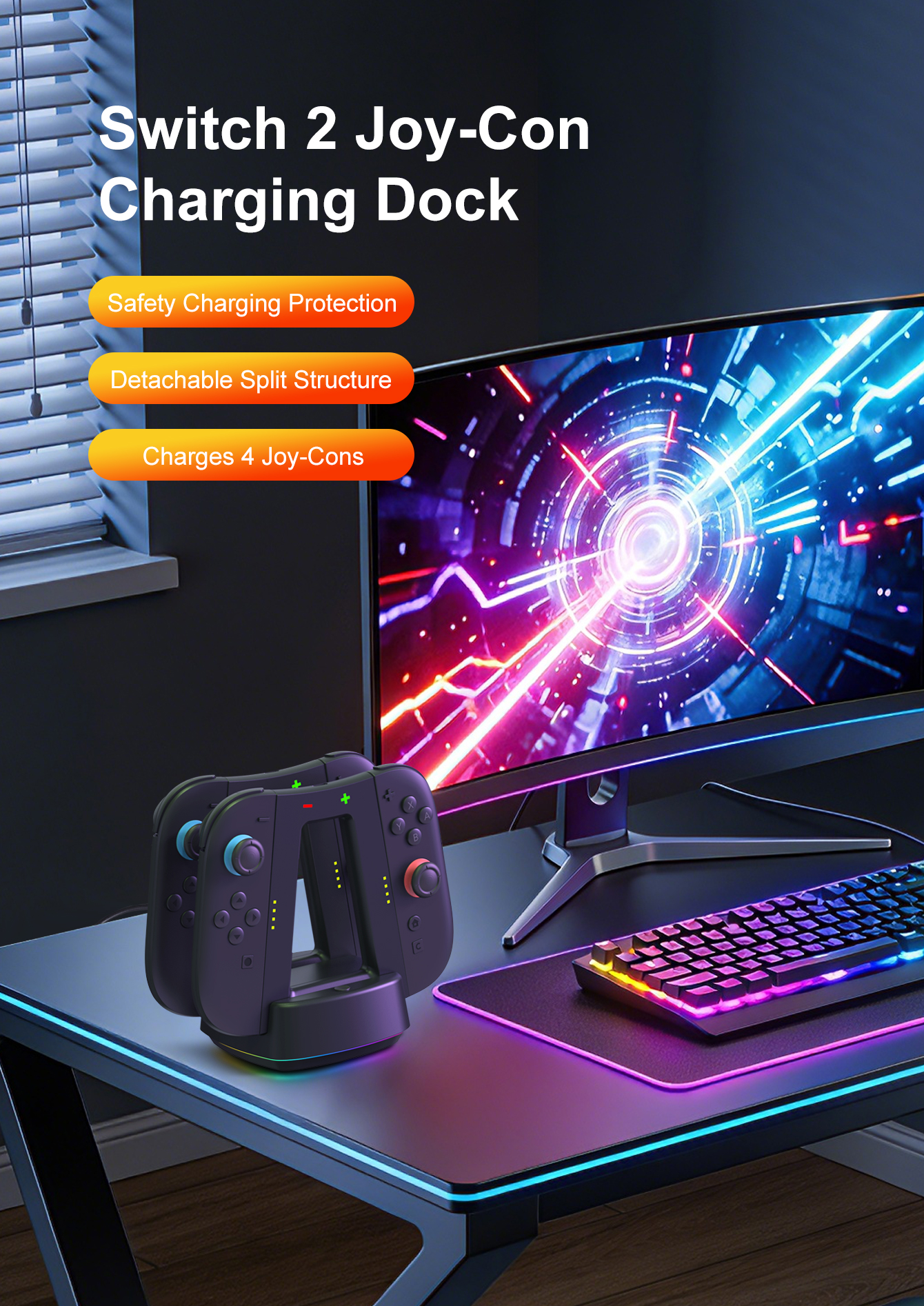 *Designed for charging the left and right JoyCon of Switch 2, and can charge 4 JoyCons at the same time.