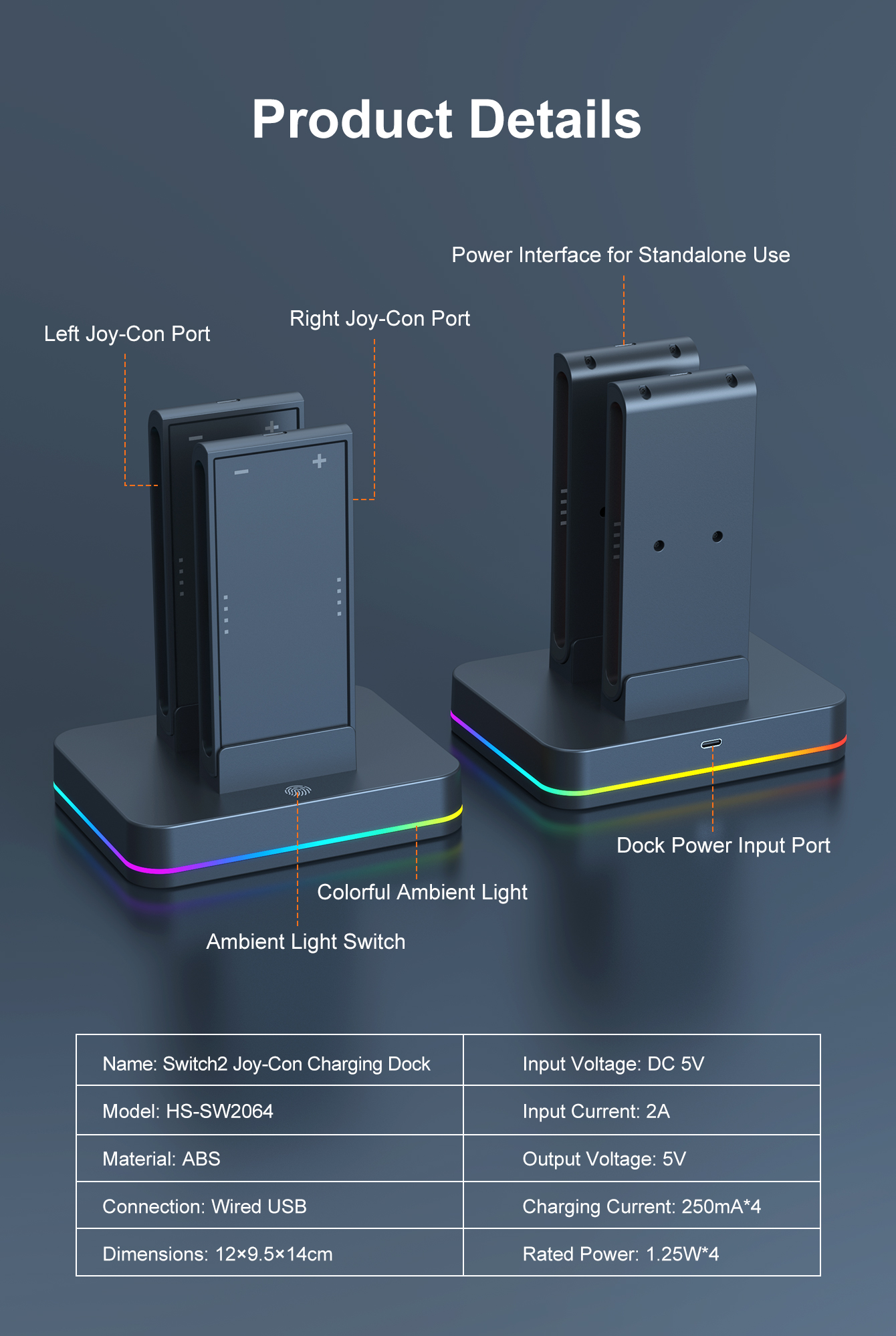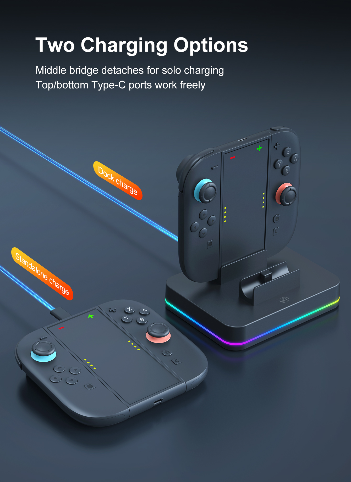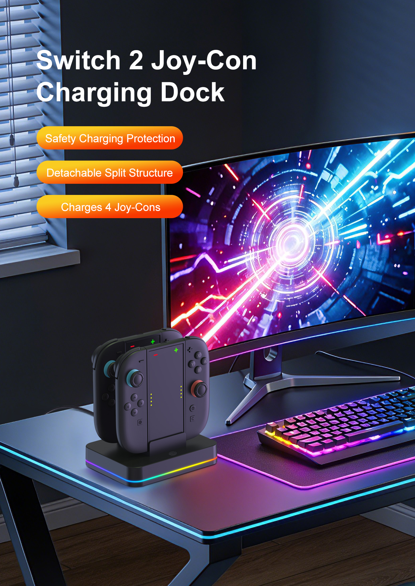 *Designed for charging the left and right JoyCon of Switch 2, and can charge 4 JoyCons at the same time.